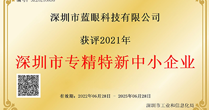 藍眼科技入選2021年“深圳市專精特新中小企業”名單