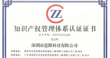 藍眼科技獲得國家知識產權管理體系現場認證證書