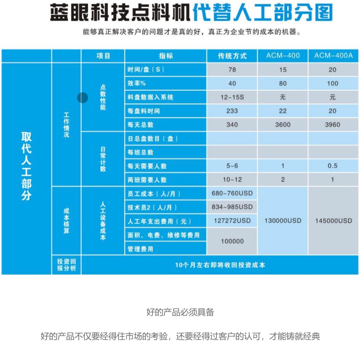 SMT點料機又稱為全自動點料機,SMT全自動點料機、SMT計數(shù)器、點料機等多種叫法,是由深圳市藍眼科技有限公司生產(chǎn)的,其中它的基本參數(shù)如下: